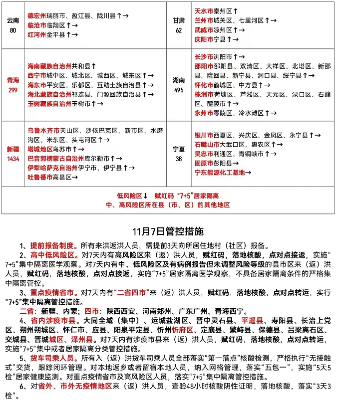 ◆所有来洪返洪人员,需提前3天向所居住地村(社区)报备;◆省外、市外无疫情地区来(返)洪人员,查验48小时核酸阴性证明,落地核酸,落实“3天3检;◆省内涉疫市县。大同全域(集中)、运城盐湖区、晋中灵石县、平遥县、寿阳县、长治上党区、朔州朔城区、怀仁市、应县、阳泉平定县、忻州忻府区、定襄县、繁峙县、保德县、吕梁离石区、交城县、晋城城区、泽州县。对7天内涉疫市县来(返)洪人员,赋红码,落地核酸,点对点转运,实施‘7+5"集中或者居家隔离分类管控措施。◆货车司乘人员。所有入(返)洪货车司乘人员全部落实’第一落点”核酸检测。严格执行"无接触式’交货,跟踪闭环管理。对本地返乡或者留宿本地人员,纳入网格管理,落实"五包一”,实施“5天5检”居家健康监测。对重点疫情省市及高风险区人员,落实“7+5”集中隔离管控措施。